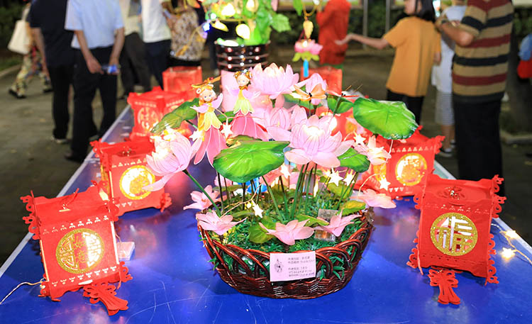 社区居民制作的荷叶灯。