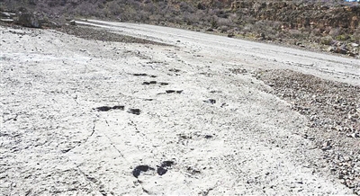 近日,科学家在乌兹别克斯坦和阿富汗交界的土库曼斯坦东部山区一处大斜坡上,发现了众多恐龙脚印。据科学家考证,这是1.5亿年前恐龙踩下的脚印化石,周边地区共发现有2500多个恐龙脚印。最大的恐龙脚印长约80厘米,宽约65厘米。